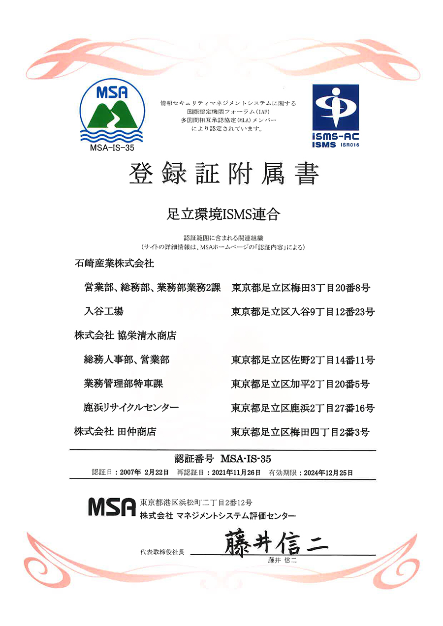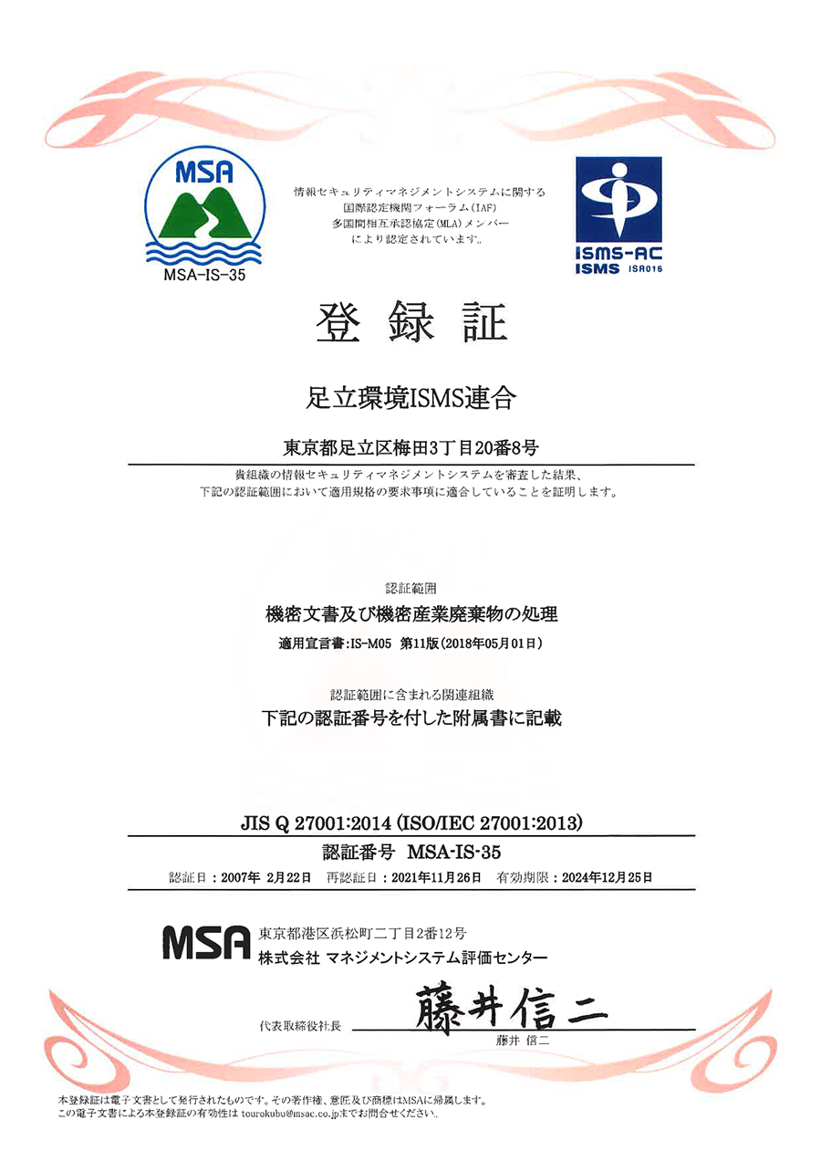 ホーム | 会社概要 | 取扱品目 | 認証許可 | ISMS基本方針 | 機密媒体処理 | 使用車種 | お問合せ | サイトマップ